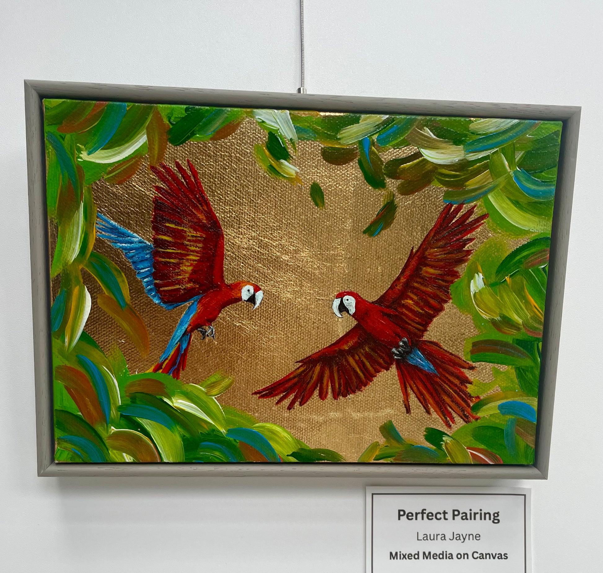 Acrylic paint creates a realistic and 3D appearance whilst the gold metal leaf base provides that tropical paradise feeling.