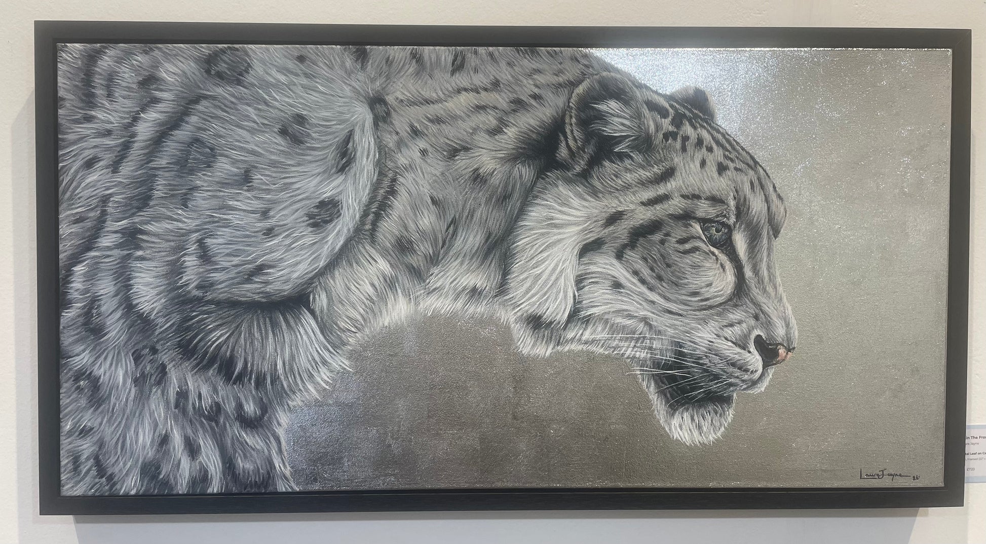 Taking a new approach to metal leaf mixed media, this piece uses the effects of silver leaf to represent our coldest climates. Here, the snow leopard is strong and resilient amongst these conditions showing us the even in the hardest of times we can come out stronger on the other side.