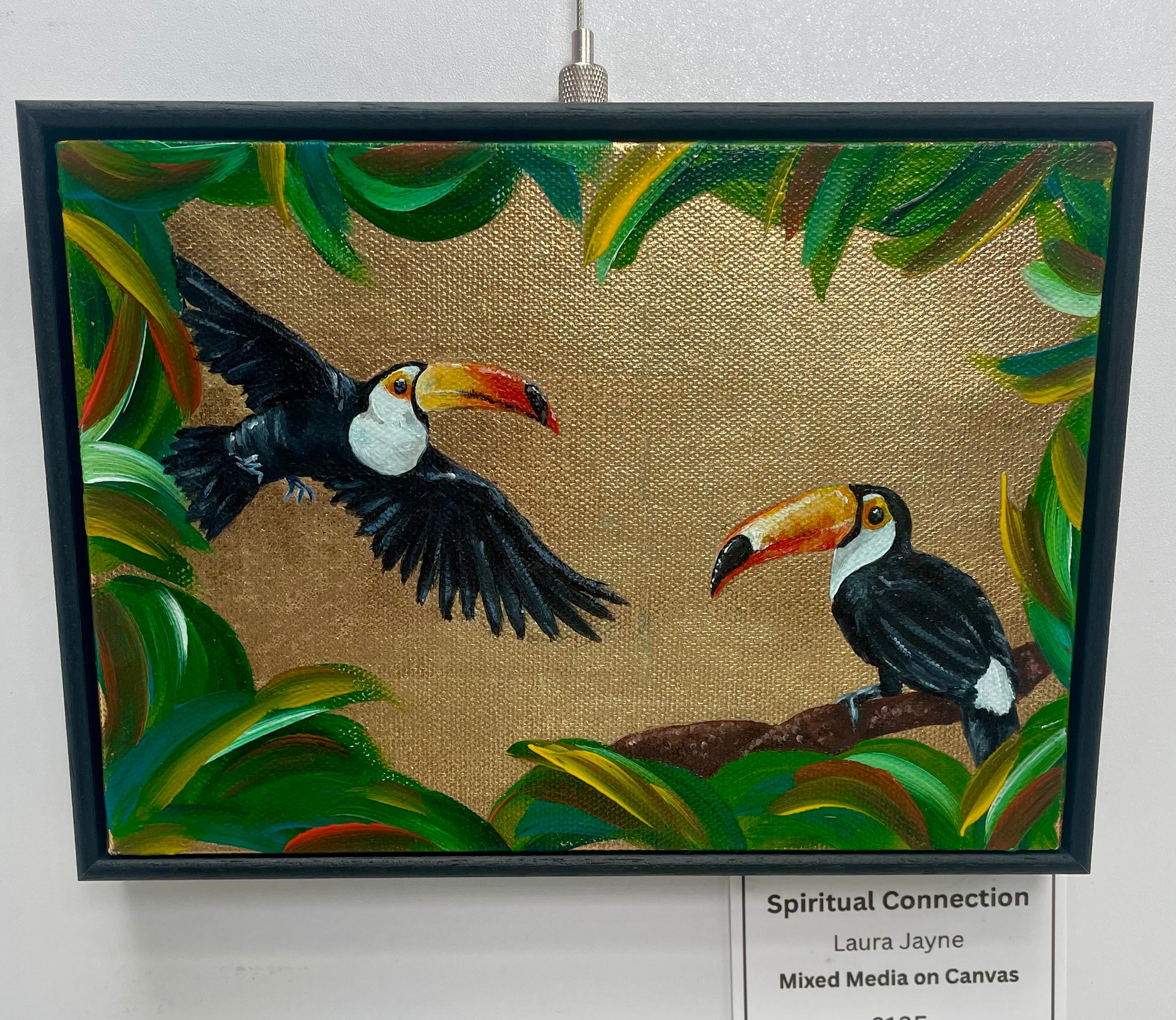 Acrylic paint creates a realistic and 3D appearance whilst the gold metal leaf base provides that tropical paradise feeling.